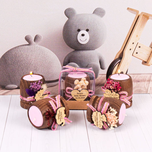Kişiye Özel Ahşap Mumluk Baby Shower Hediyeleri, Bebek Şekeri