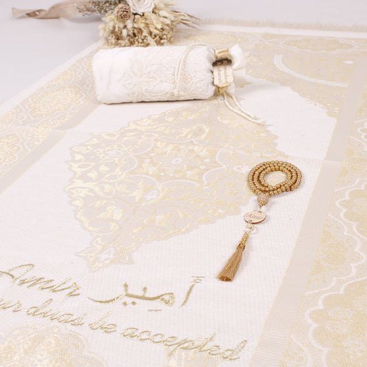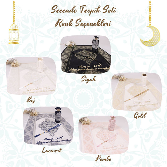 Kişiselleştirilmiş İsme Özel Seccade Kuran Tesbih Hediye Seti, Hediyelik İsimli Seccade Seti
