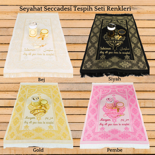 İsme Özel Seccade Kuran-ı Kerim Tespih Hediye Seti | Hediyelik İsimli Seccade Seti, Namazlık Seyahat