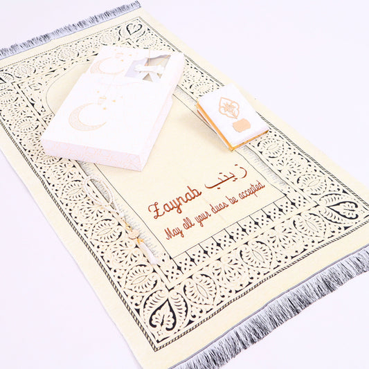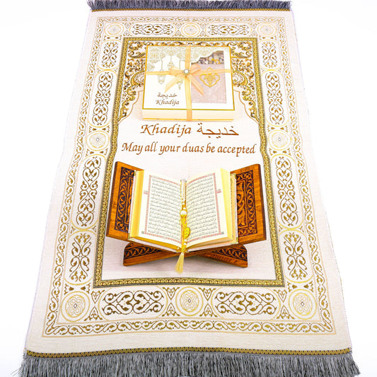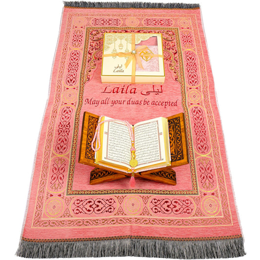 Kişiselleştirilmiş İsme Özel Seccade Kuran Tesbih Hediye Seti, Hediyelik İsimli Seccade Seti