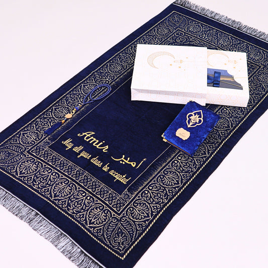 Kişiye özel tasarlanan seccade setleri, hem estetik hem de manevi değeriyle dikkat çekiyor. Sevdiklerinize özel günlerde anlamlı bir hediye sunmak için ideal bir seçenek! Her biri özenle hazırlanan setlerimizde şu ürünler yer alıyor: