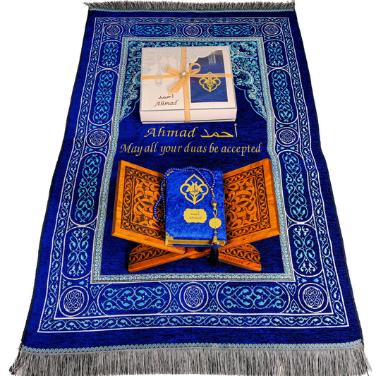 Kişiselleştirilmiş İsme Özel Seccade Kuran-ı Kerim Tespih Hediye Seti, Hediyelik İsimli Seccade Seti