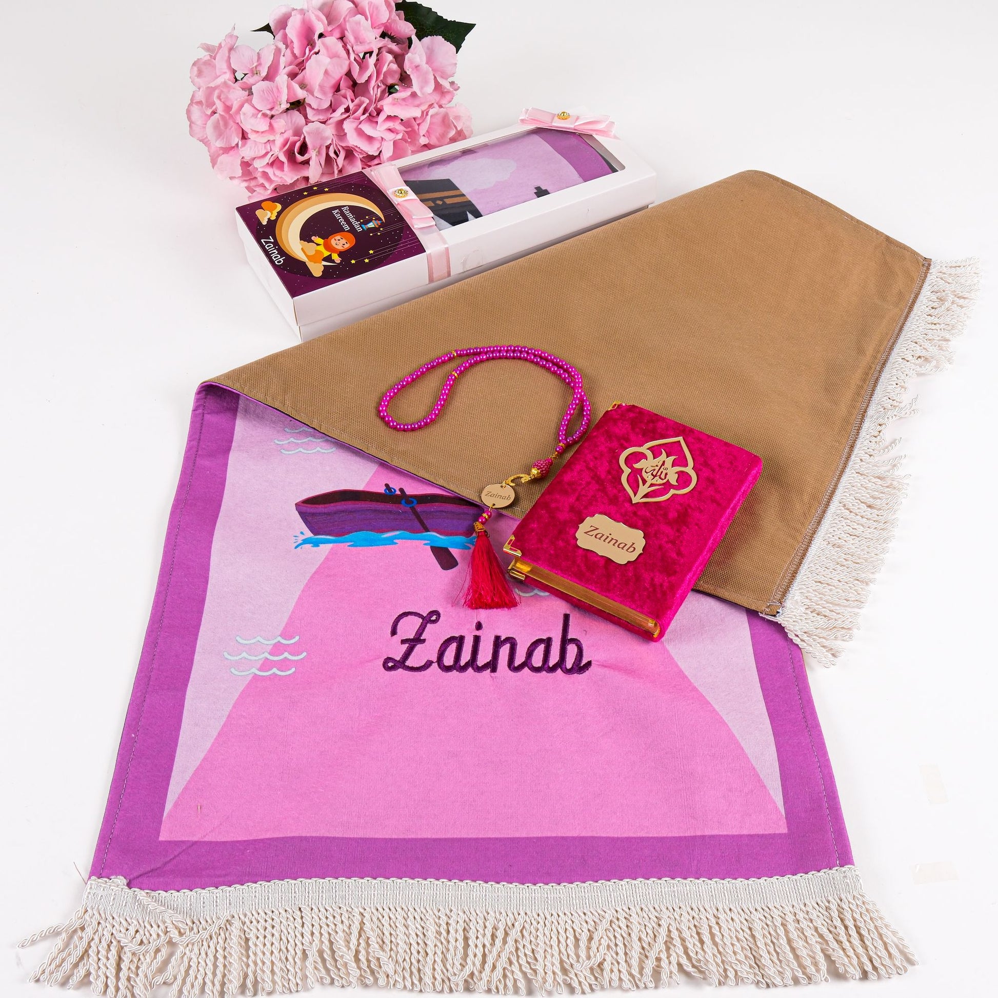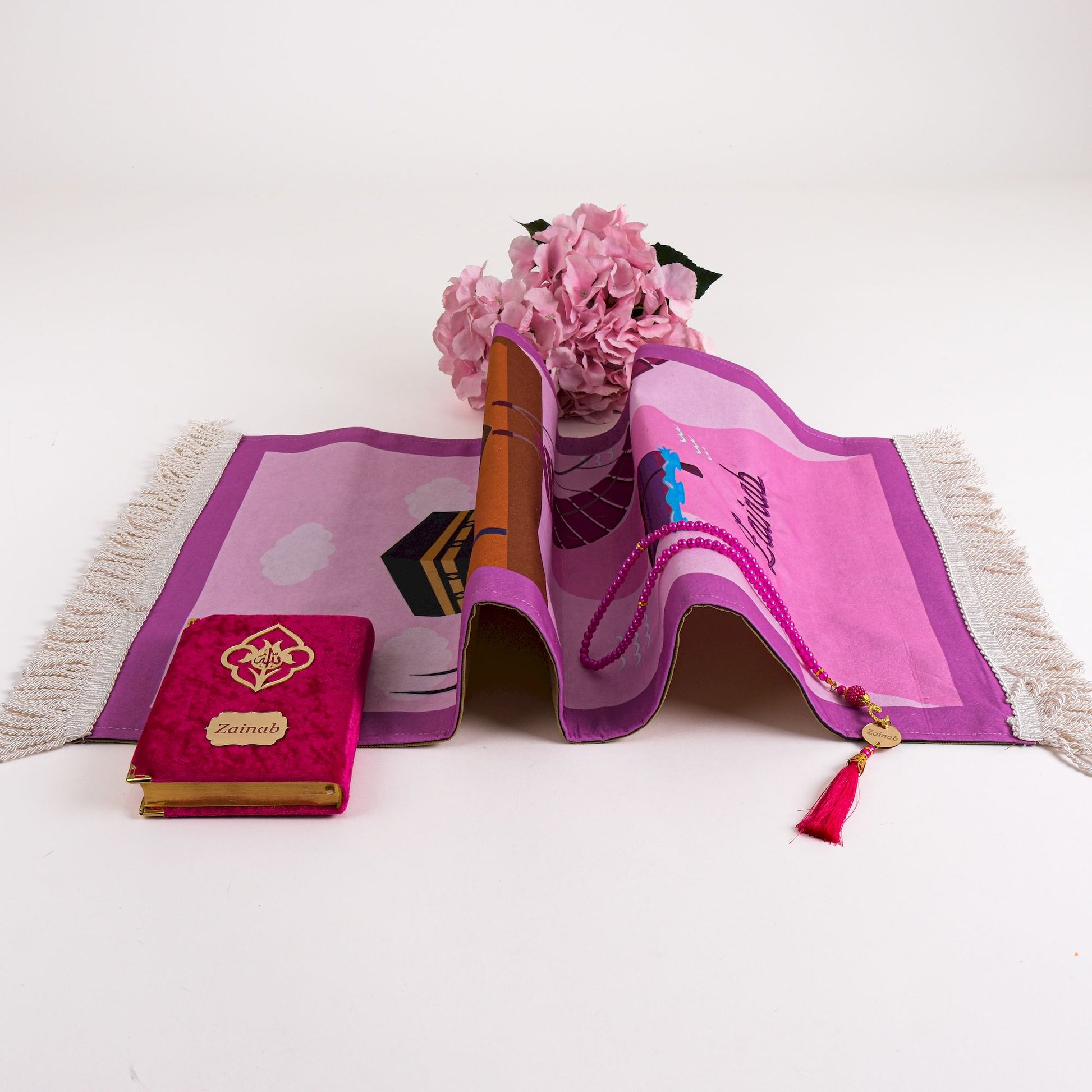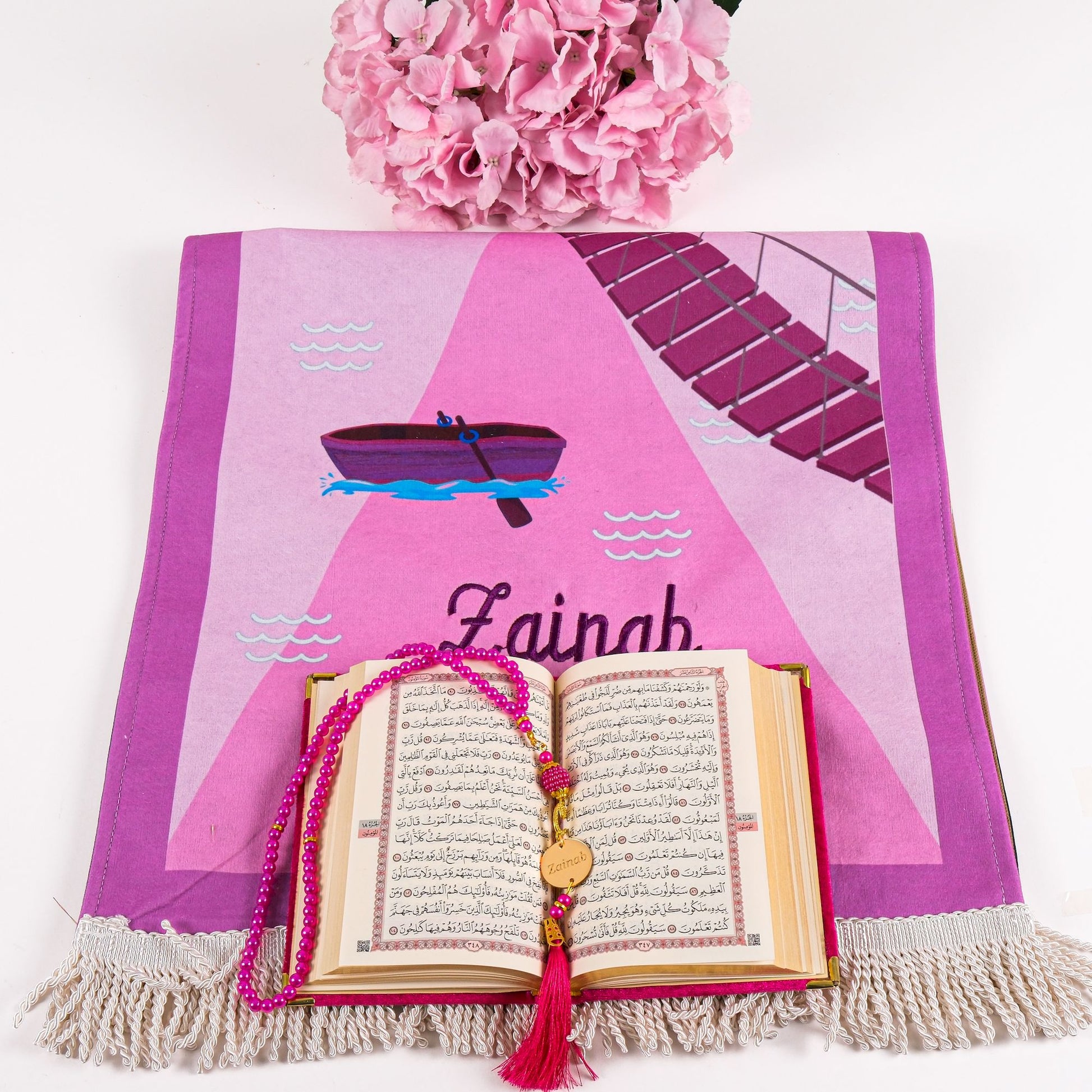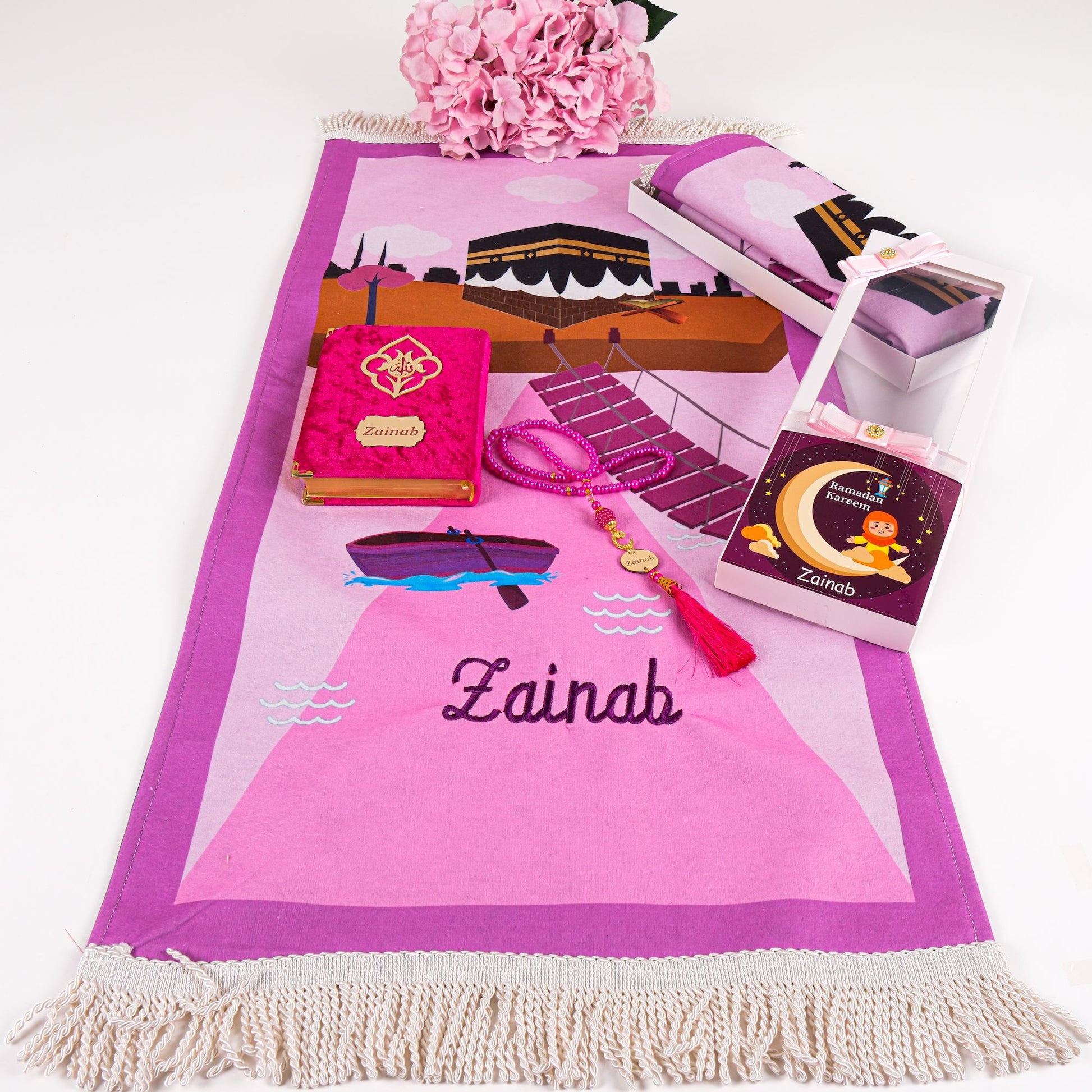 İsme Özel Çocuk İçin Seccade Kuran Tesbih Hediye Seti, Hediyelik İsimli Seccade Seti