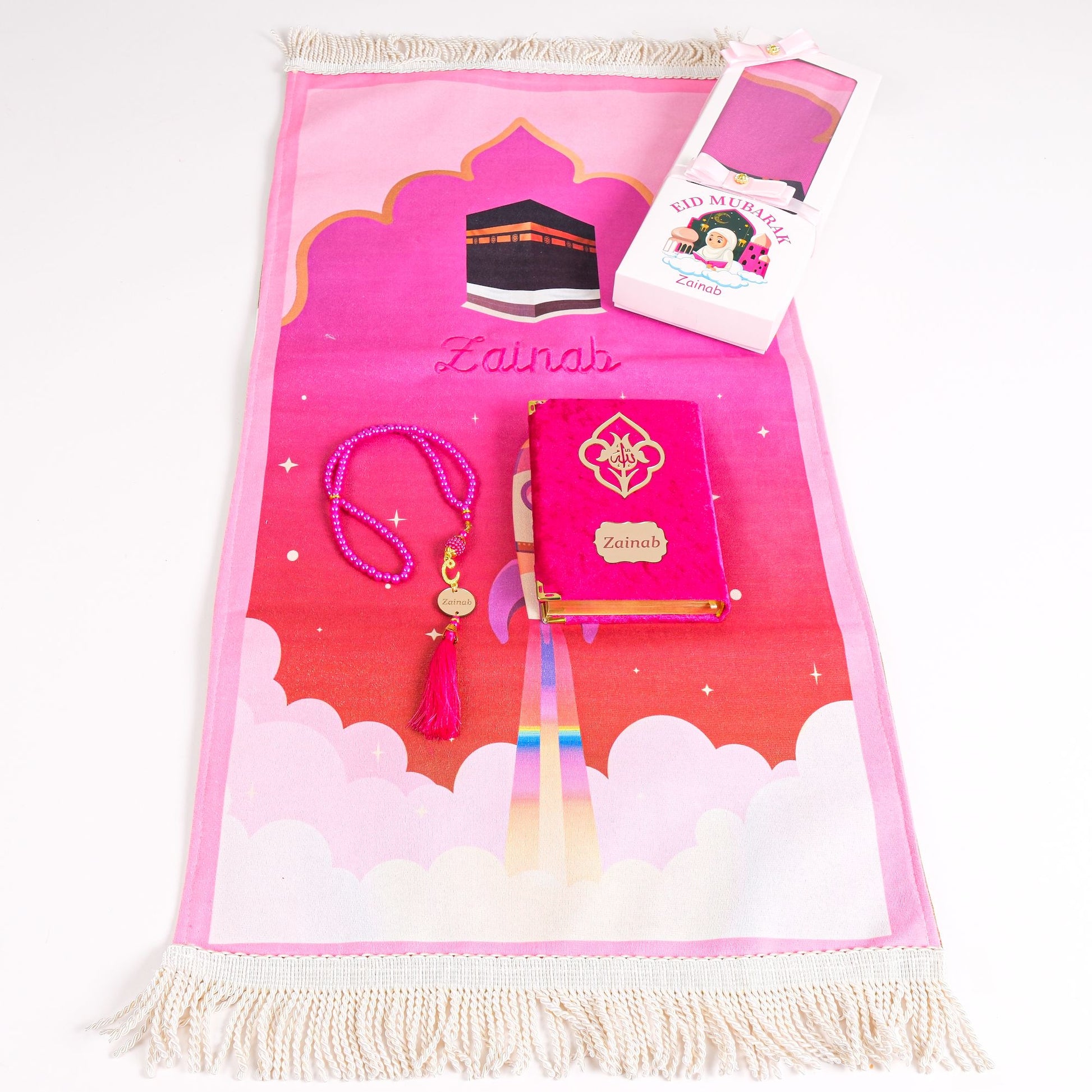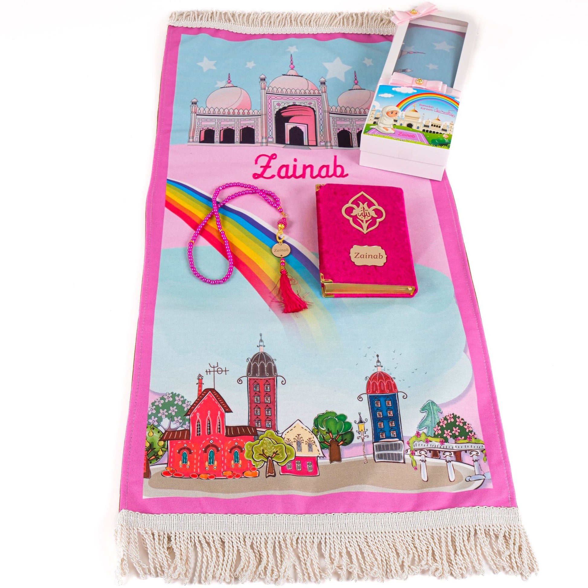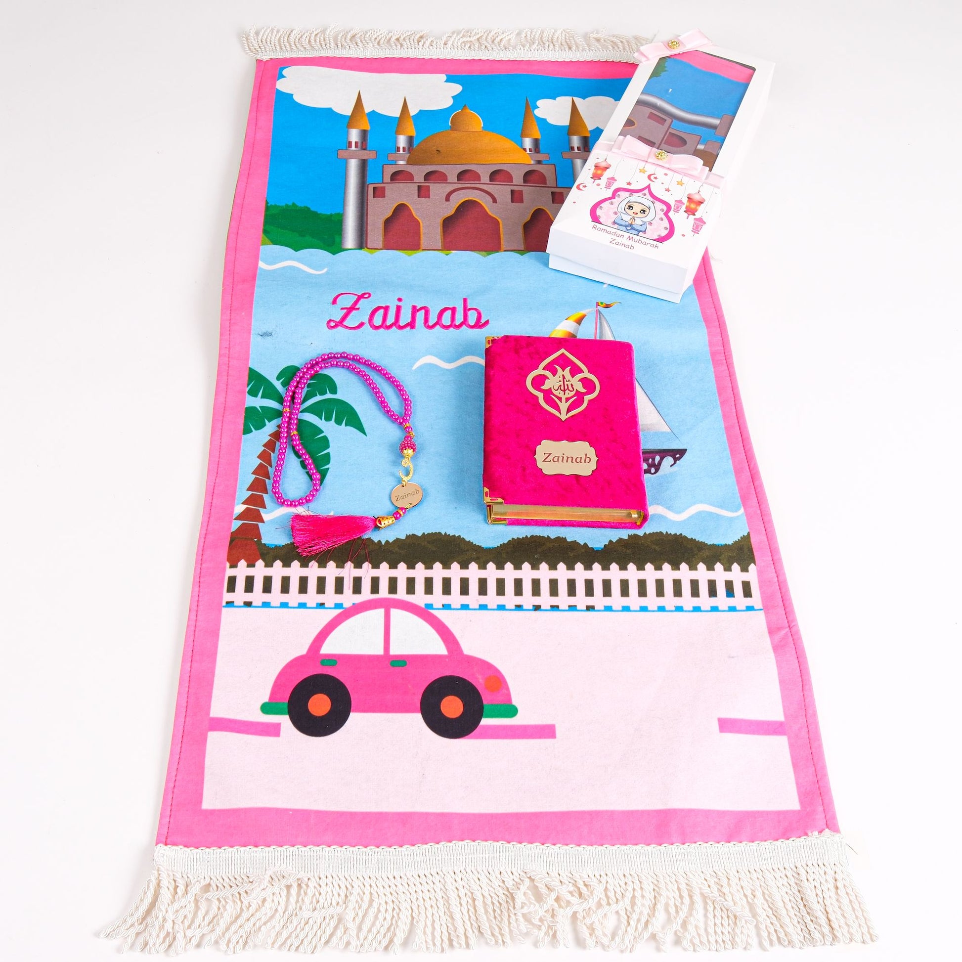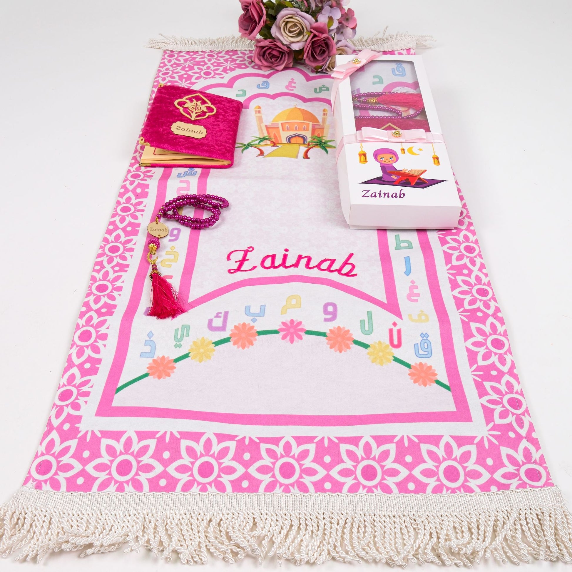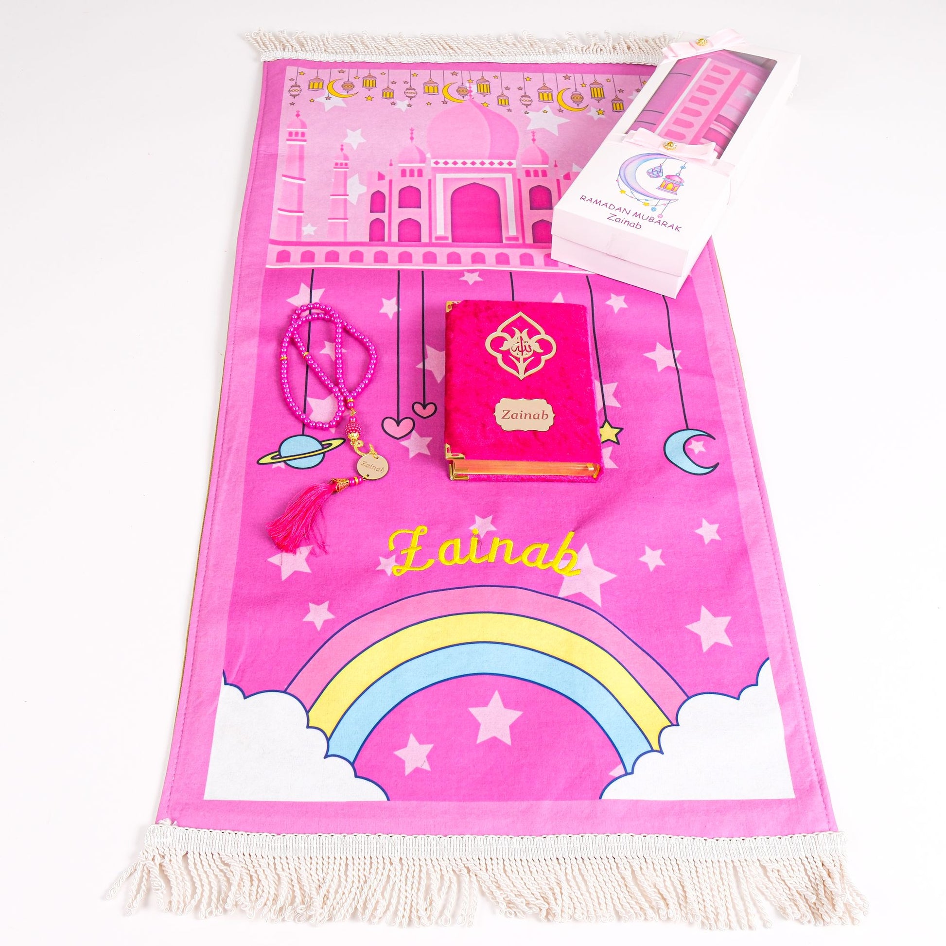 İsme Özel Çocuk İçin Seccade Kuran Tesbih Hediye Seti, Hediyelik İsimli Seccade Seti