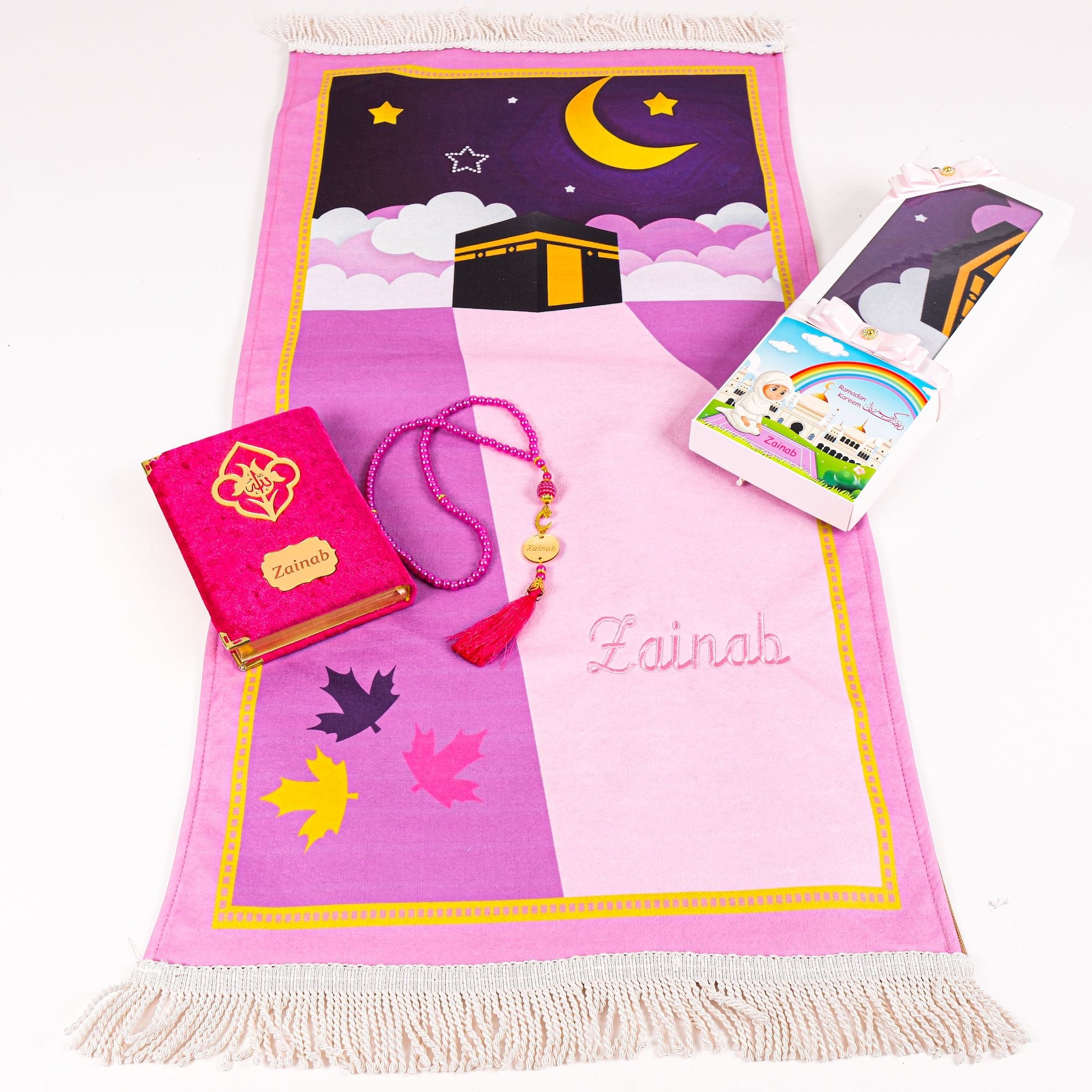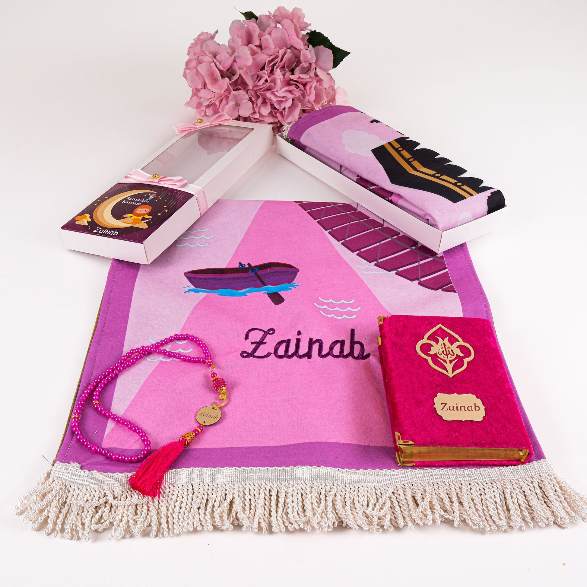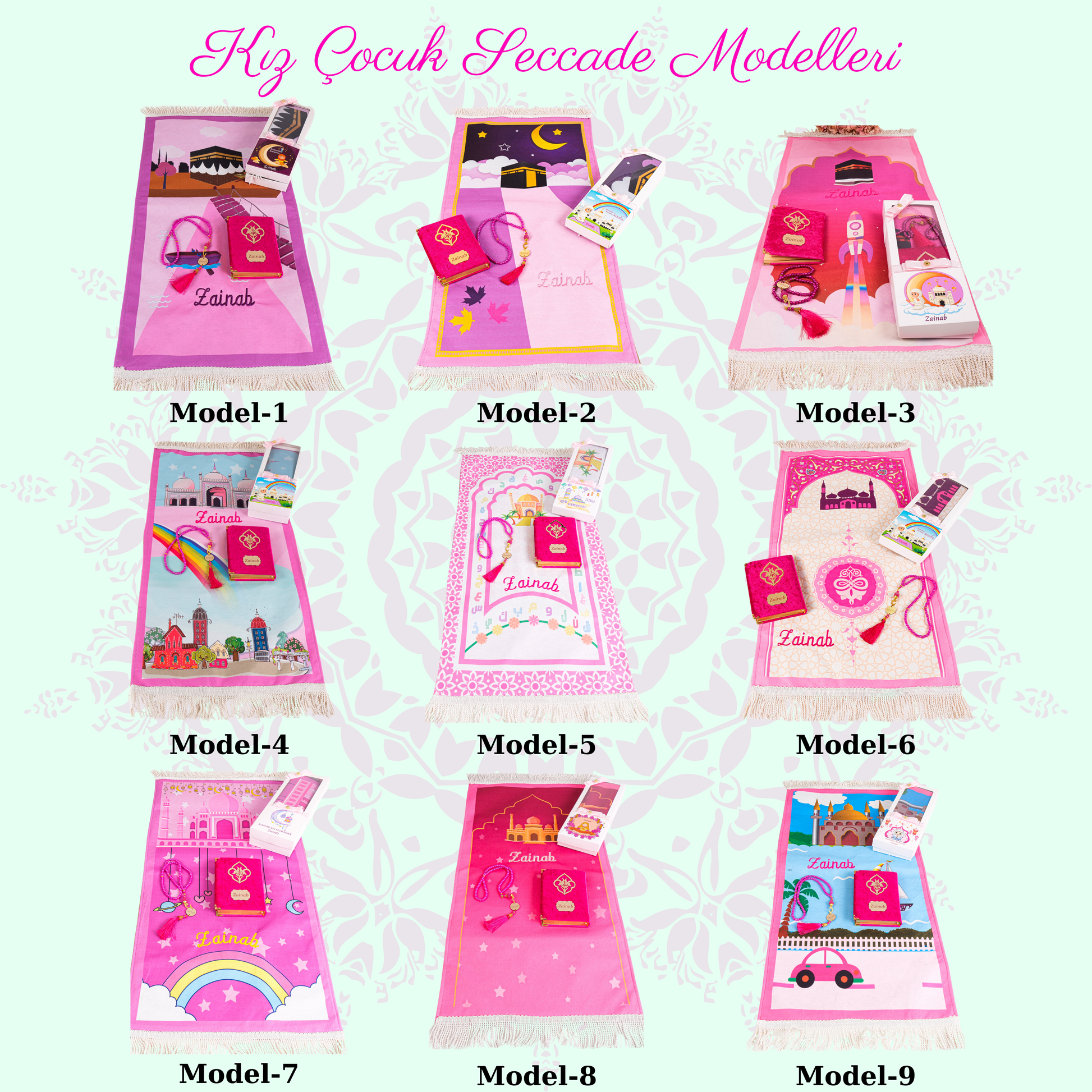 Çocuğunuz, yeğeniniz ya da arkadaşınızın çocuğuna, kendisini özel hissettirecek hem estetik hem de manevi değeriyle dikkat çeken kişiye özel seccade setlerini sizin için hazırladık.