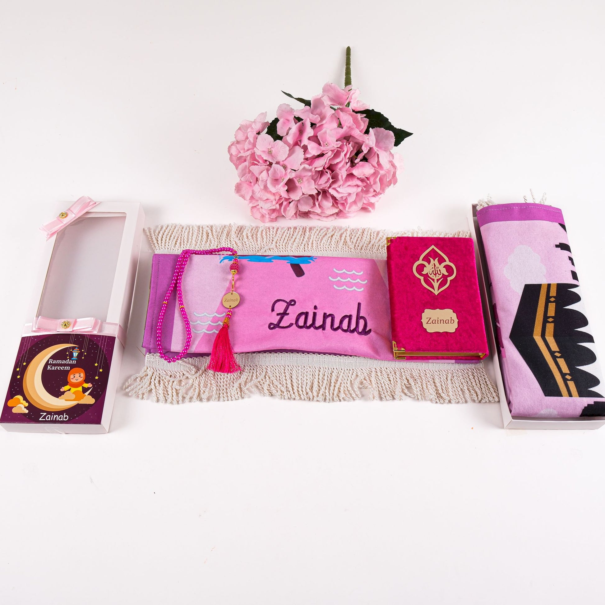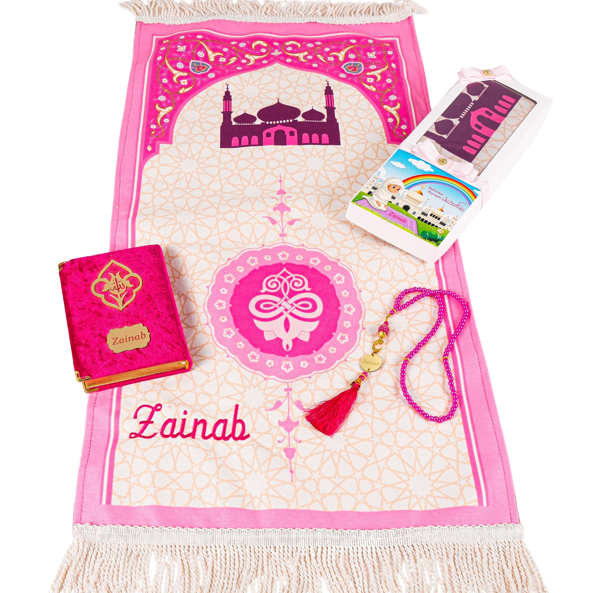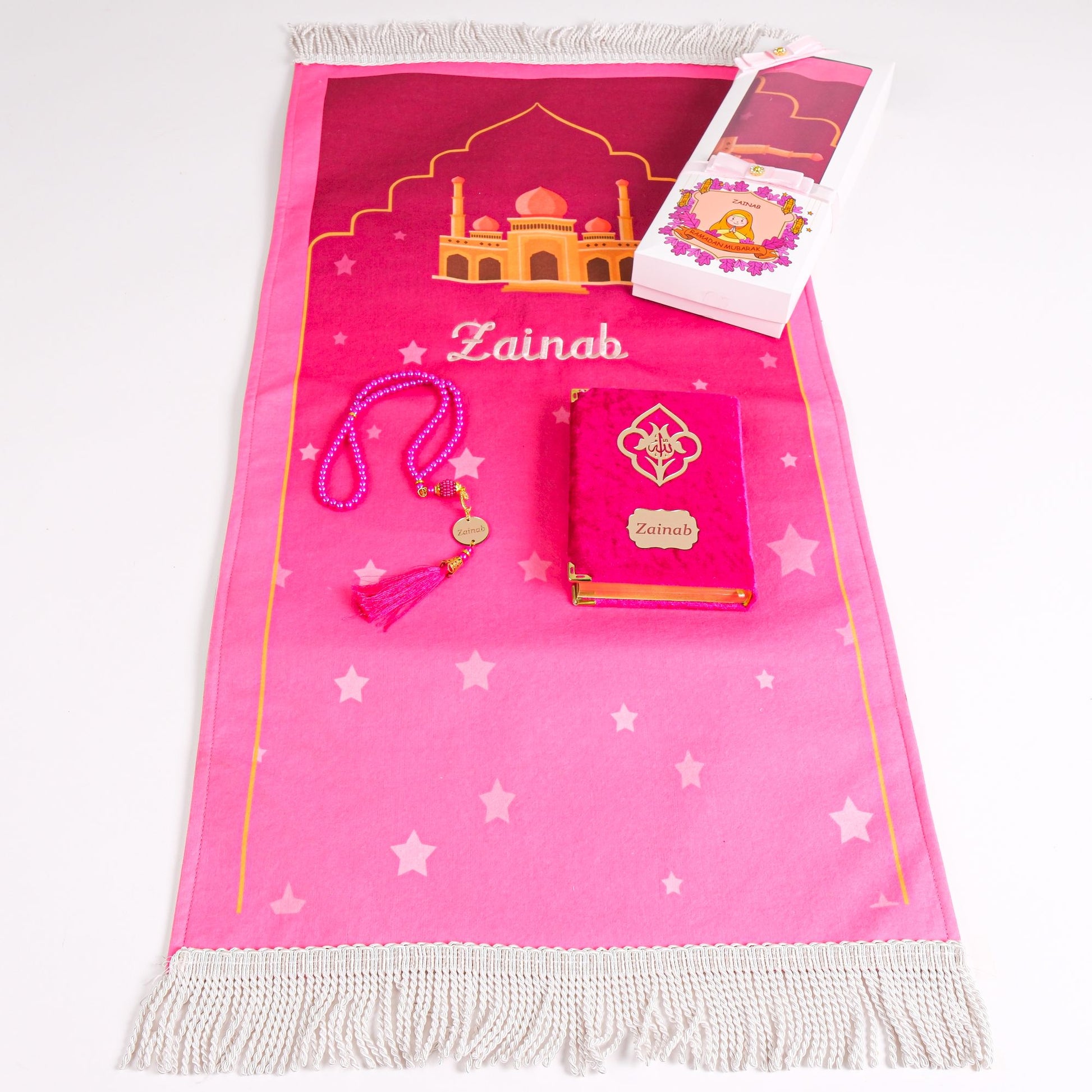 Çocuğunuz, yeğeniniz ya da arkadaşınızın çocuğuna, kendisini özel hissettirecek hem estetik hem de manevi değeriyle dikkat çeken kişiye özel seccade setlerini sizin için hazırladık.