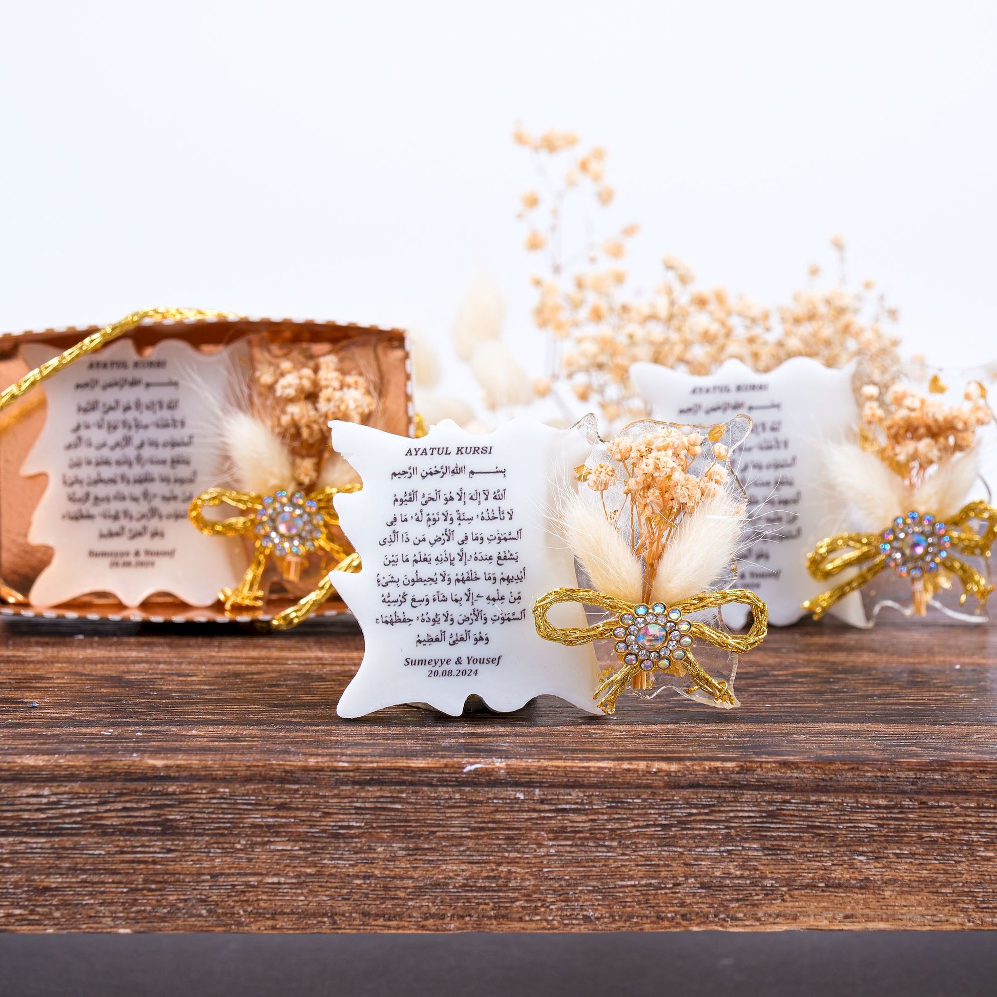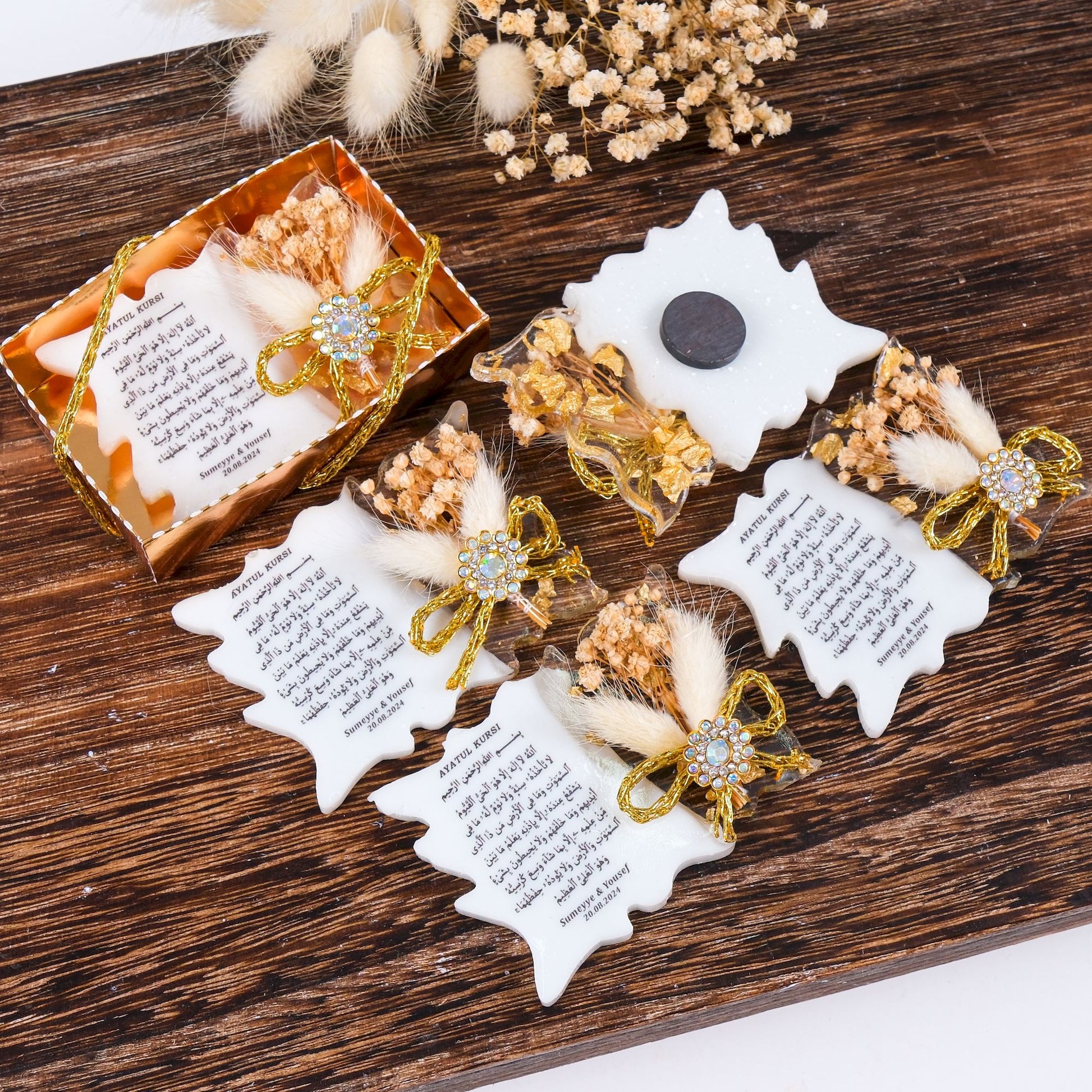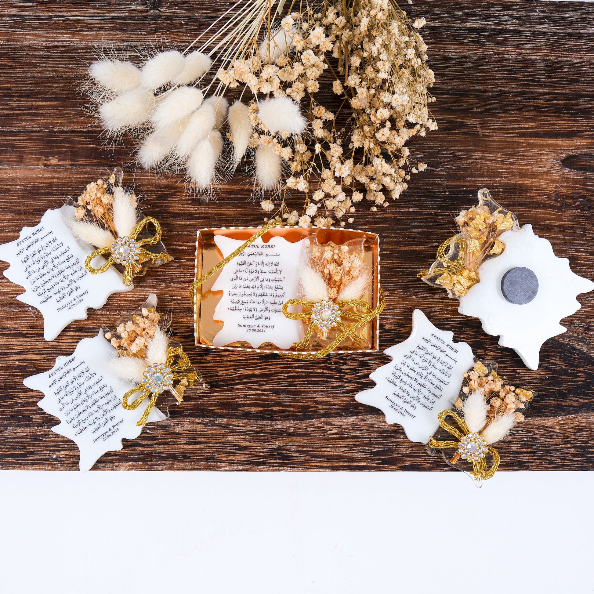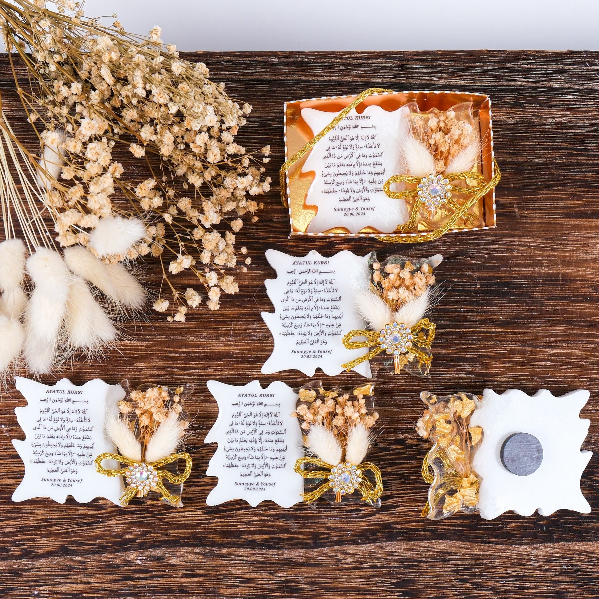Sevdiklerinize özel ve kalıcı bir hatıra bırakın! Bu kişiye özel epoksiden yapılmış ve üzerine UV baskı ile Ayet-el Kursi yazılmış magnet, baby shower, mevlid veya doğum hediyesi olarak hem şık hem de işlevsel bir alternatif sunar.